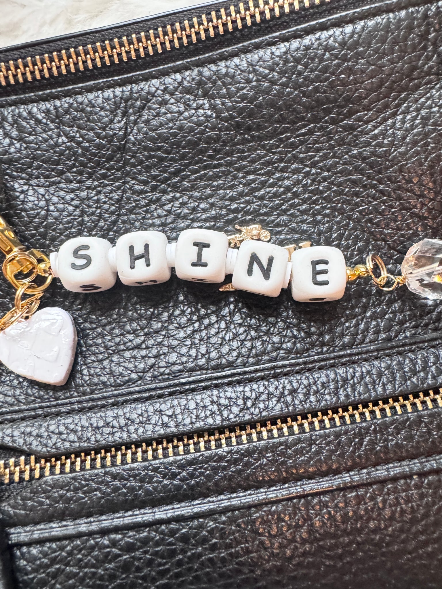 Elevate your bag with a key chain and charms. Function meets fashion with hearts,crystals and gold accents . Hook it all on with a goldtone carabiner . Total measurements 9 inches long